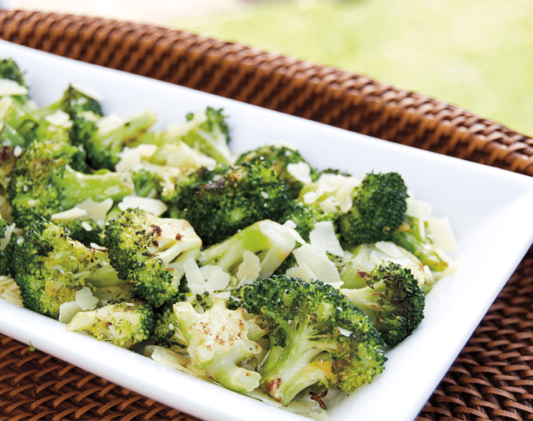 Снимаем брокколи с гриля, посыпаем тертым сыром и сразу подаем к столу.