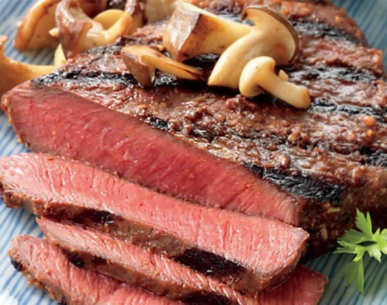 Снимаем стейки с гриля и даём им постоять при комнатной температуре, пока готовим грибы.