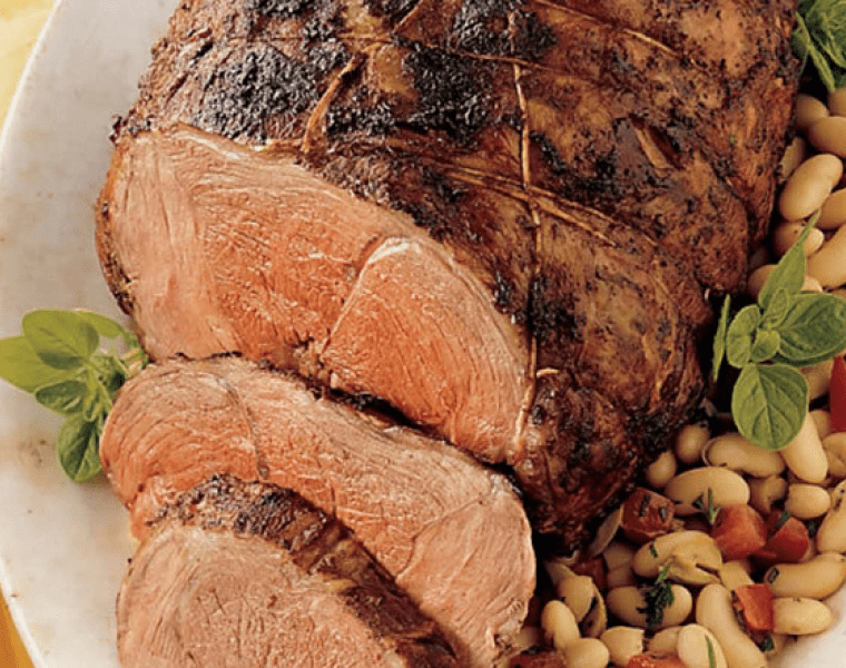 В средней сковороде на среднем огне разогреваем фасоль. Добавляем нарезанные помидоры, оливки, масло, петрушку и уксус, после чего тщательно все перемешиваем. Подаем гарнир и нарезанное мясо барашка к столу теплыми.