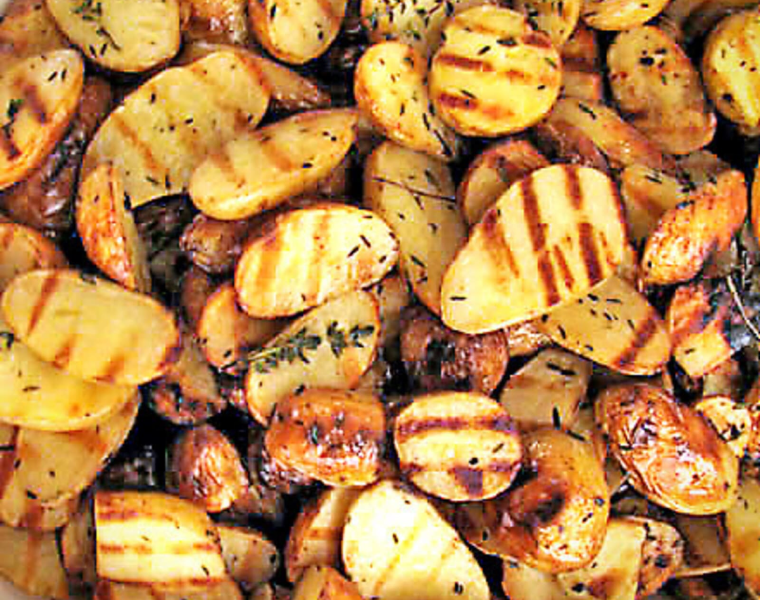 Снимаем картофель с гриля, посыпаем солью и подаем к столу теплым.