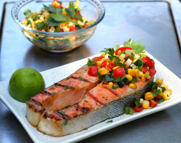 Снимаем стейки с гриля и подаем их к столу теплыми вместе с сальсой.