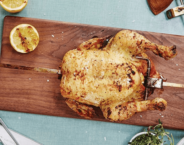 Снимаем тушку с вертела и даем ему постоять при комнатной температуре 15 минут. В это время внутренняя температура мяса может подняться еще на несколько градусов.