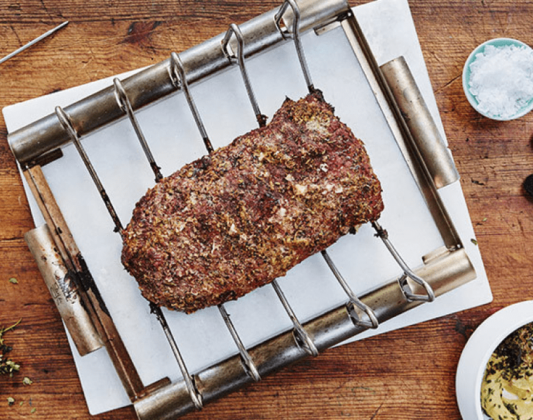 Повторяем чередование жарки и отдыха, пока внутренняя температура мяса не достигнет 58 °С. Затем снимаем мясо с гриля, накрываем его фольгой и даем постоять около 20 минут, после чего разрезаем на порции и подаем к столу.