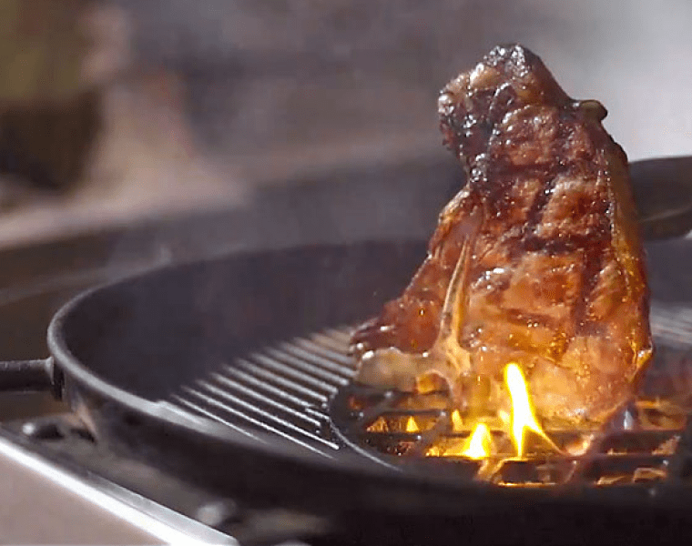Жарим стейки на решетке Sear Grate 5 минут, по 2,5 минуты с каждой стороны.